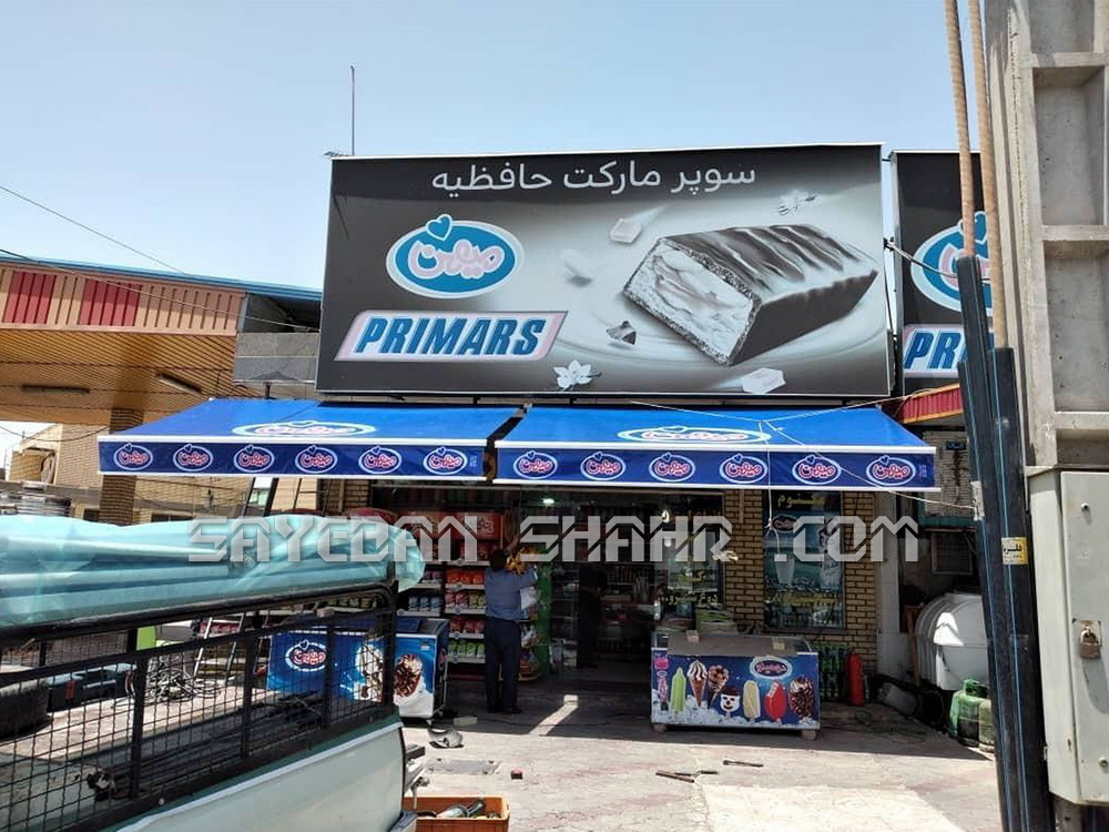 همچنین این سایبان از ورود قطرات باران و برف به درون فروشگاه جلوگیری می نماید. سایبان از ضروریات یک مغازه در فضای باز است و بهتر است که با جلوه های بصری جذاب و چشمگیر همراه باشد تا نظر گذرندگان را به خود جلب نماید.
